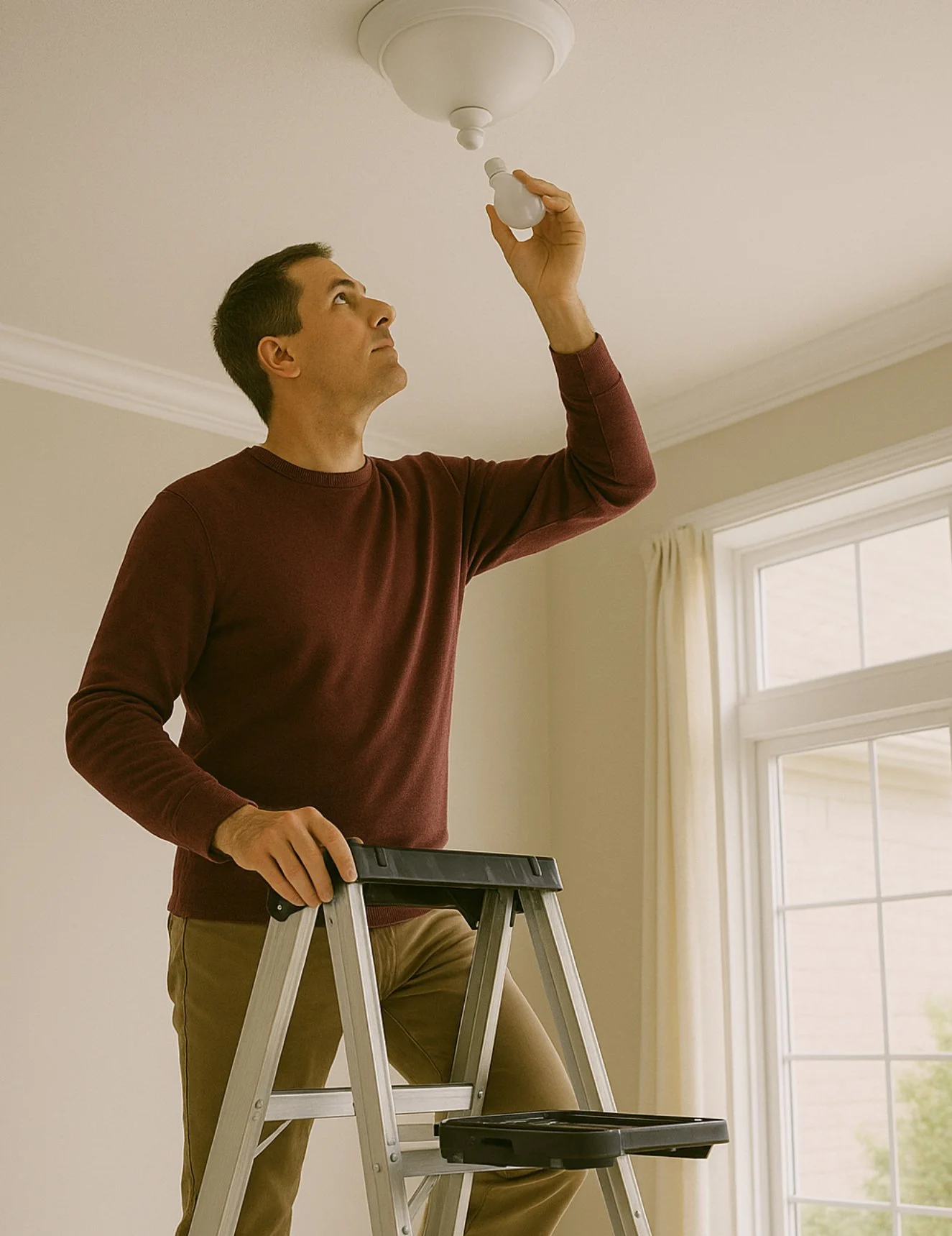 Simple Home Maintenance Services will safely replace your hard-to-reach light bulbs, so you don’t have to climb the ladder. Brighten up your space—safely and hassle-free!